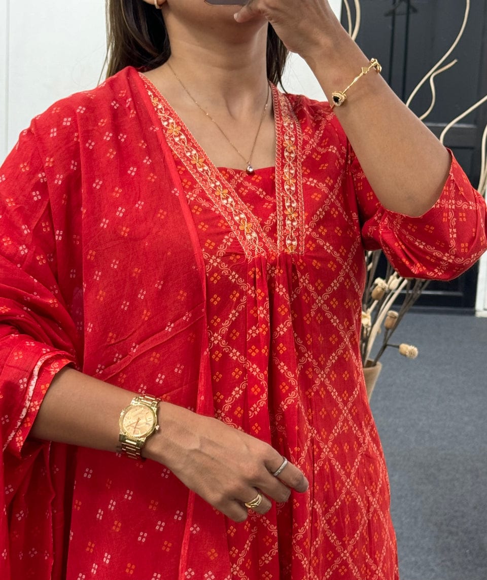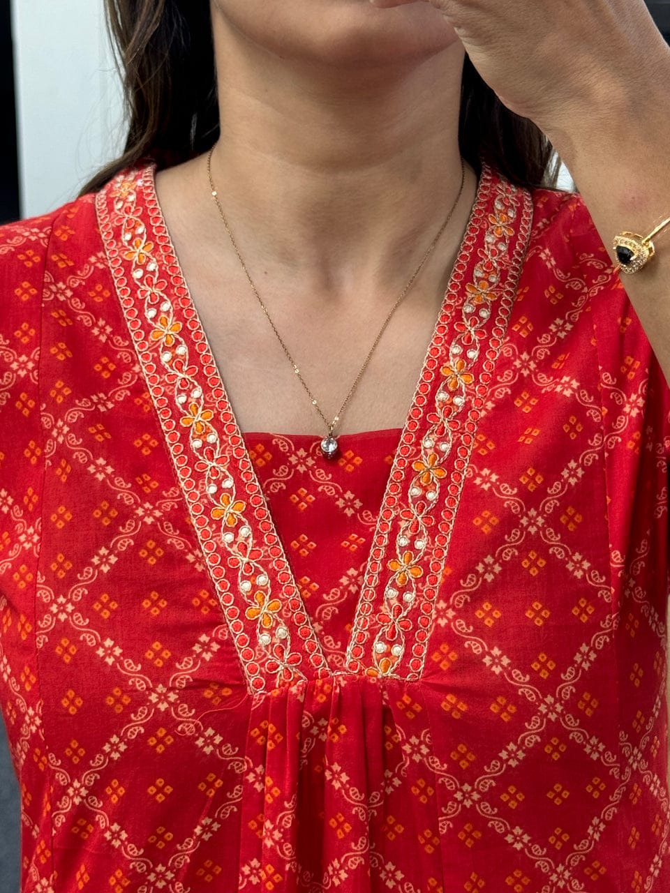 Designer Pink & Orange Bandhani Suit Set with Heavy Neck Embroidery