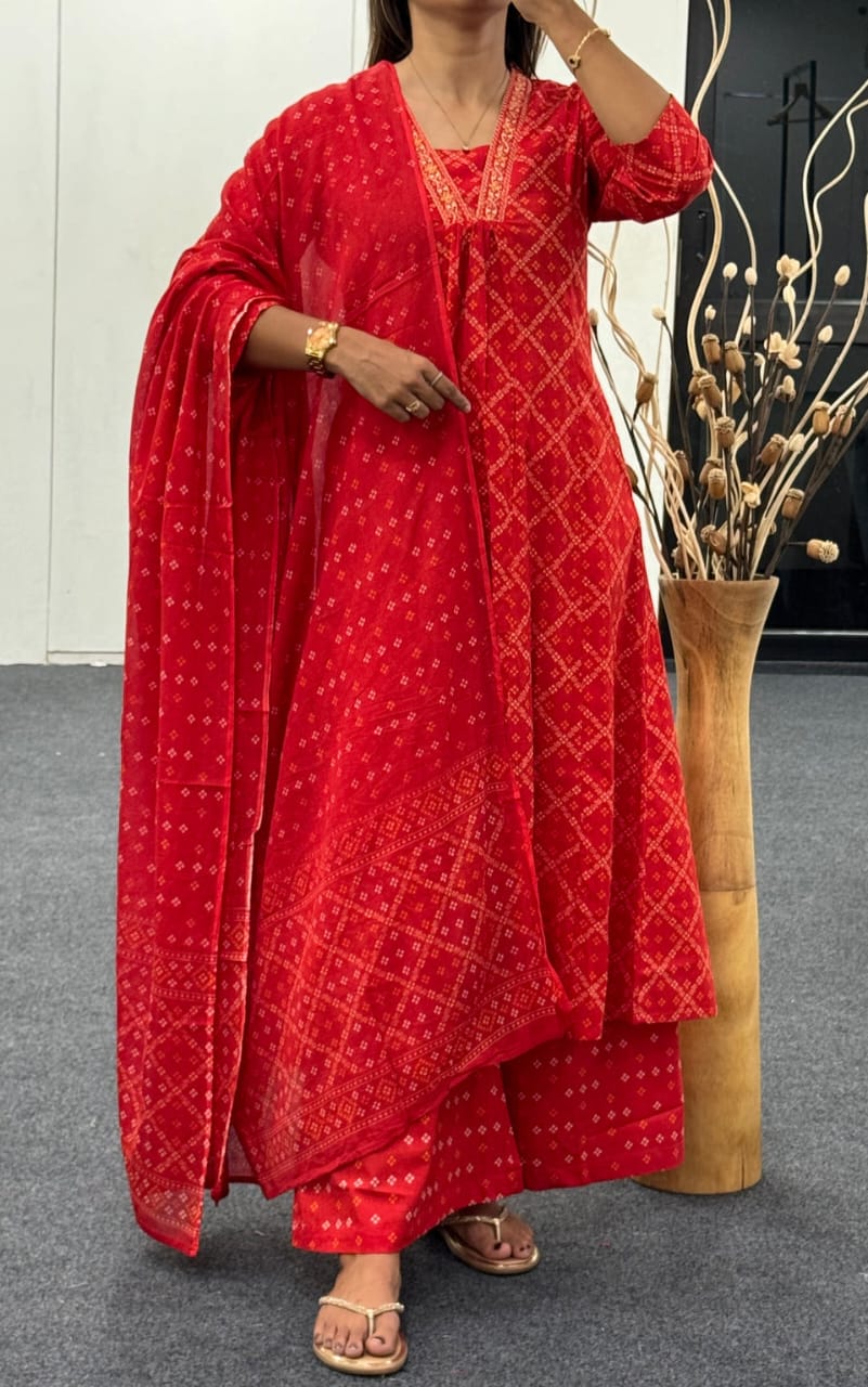 Elevate your wardrobe with this Red 3 Piece A Line Suit Set, expertly crafted for a flattering silhouette. The A-line cut ensures comfort and elegance, while the vibrant red hue adds a bold statement. This coordinated set offers versatility for both formal and festive occasions, combining style with ease of wear. Perfect for those seeking a refined and polished look.